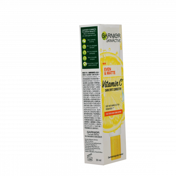 Garnier Even & Matte Dark Spot Corrector Unclogs And Tightens Pores, Reduces Dark Marks, And Visibly Restores Your Skin’s Natural Radiance.